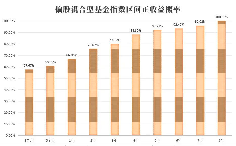 通過(guò)回測(cè),我們會(huì)發(fā)現(xiàn),任意時(shí)間點(diǎn)買(mǎi)入并持有偏股混合型基金指數(shù)(Wind代碼:885001.WI),隨著持有時(shí)間的拉長(zhǎng),獲得正收益的概率逐漸上升。時(shí)間越短,不確定的因素就越多;時(shí)間越長(zhǎng),正確的概率就越大,同時(shí)原先困擾的短期事件也會(huì)隨著時(shí)間而逐漸降低影響。